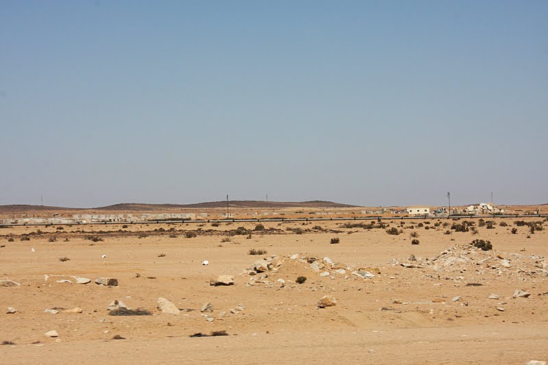 Kaum merklich verlieren wir weiter an Höhe, die Landschaft verändert sich nun aber sichtlich. Leicht hügeliges, grasiges Gelände geht allmählich in wellig-flache Sand-Geröllwüste über, die Farbe des Bodens wird immer gräulicher, die Vegetation immer spärlicher – wir nähern uns der Uranminen-Hochburg Namibias. Das Tagebau-Gebuddel, bei dem sich Sprengungen bis zu 300 Meter in die Tiefe vorarbeiten, hinterlässt deutliche Spuren in der sensiblen Wüstenlandschaft. Klar, wenn dabei das Oberste zuunterst gekehrt wird… Aber nicht nur das. Seit Kilometern schon sehen wir riesige schwarze Pipelines, die sich über den geschändeten Boden schlängeln. Sie transportieren entsalztes Meerwasser zu den Minen, das dort in großen Mengen zum Waschen des abgebauten Gesteins benötigt wird. Eine gute Sache eigentlich, denn bis vor kurzem noch deckte man den gesamten, sehr massiven Bedarf, indem man die Grundwasserreservoirs der umliegenden Riviere (Khan, Kuiseb und Swakop) anzapfte. Das wiederum brachte auf Dauer die Trinkwasserversorgung diverser Städte in Gefahr und, noch viel schlimmer, die Flora und Fauna völlig aus dem Gleichgewicht. Nun bringt die Entsalzungsanlage dahingehend Entlastung, aber irgendwo muss das gebrauchte Waschwasser ja auch wieder entsorgt werden. Es wird praktischerweise ins Meer zurückgeleitet; schwer mit Salzen angereichert und mit dem Chlorgehalt eines Swimmingpools. Natürlich ohne jegliche Gefahr für die Natur, so sagt wenigstens der Betreiber der Entsalzungsanlage. Logisch, was soll er auch sonst sagen!
