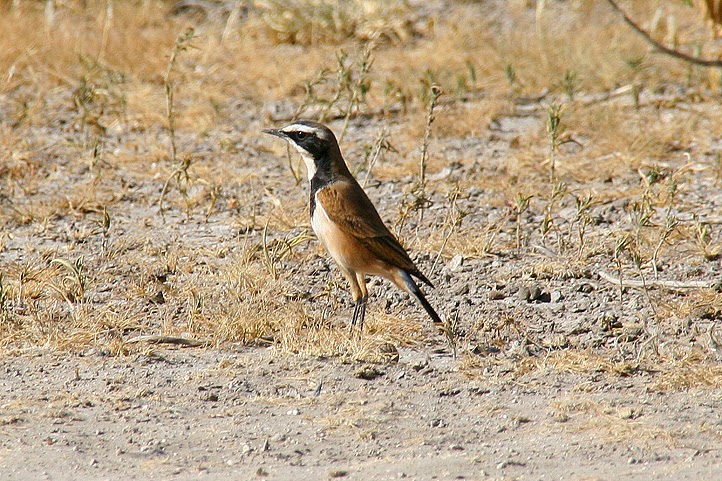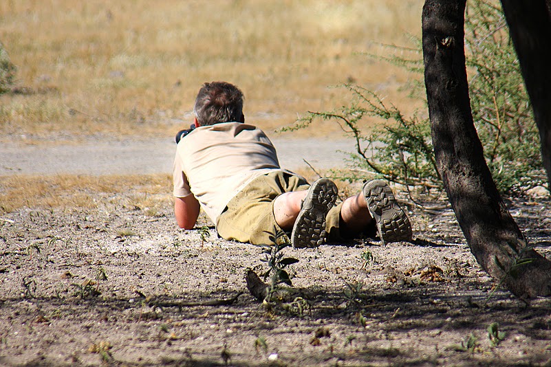 So bleibt den Neuankömmlingen nur der Blick auf die sich entfernenden Kehrseiten dreier Antilopen und das daraufhin zurückbleibende Kräuseln der verlassenen Wasseroberfläche. Zur Entschädigung jedoch werden sie umgehend von Annette en detail in unser Löwenabenteuer eingeweiht. Ein Verhalten, das unter Safariisten übrigens weit verbreitet ist: nach einer kurzen Begrüßung und einem abtastenden Woher-Wohin werden sofort und gerne die Großwilderlebnisse miteinander geteilt, meist nach dem fast unverhohlen Motto „Meiner ist größer als Deiner!“. In gewisser Weise ähneln Safaritouristen darin Jägern oder Anglern, deren Erlebnis-Berichte vergleichbare Ziele verfolgen und zudem meist noch extensiv ausgeschmückt werden. Allen drei Spezies aber ist eines gemein: es spricht der Stolz aus ihnen und je einzigartiger die Sichtung war, desto neidischer sind die anderen. Der Neid der Neuankömmlinge ist uns in diesem Falle auch gewiss, vor allem, weil die Löwen auf Nimmerwiedersehen von der Campsite verschwunden sind und somit jede Hoffnung auf eine Wiederholung der Sichtung vergebens ist. Heinz und ich halten uns aus dem Gespräch heraus, denn wir sind weder mit Stolz erfüllt, noch können wir den Drang nachvollziehen, sich über Großwilderlebnisse austauschen zu müssen, an deren Interessenspitze stets Großkatzen stehen. Wir könnten zur Abwechslung ja über unseren Perlhuhnnachmittag berichten, meint Heinz grinsend, als wir beide auf allen Vieren durchs Gebüsch krabbeln und einen Rotbrustwürger belauern…