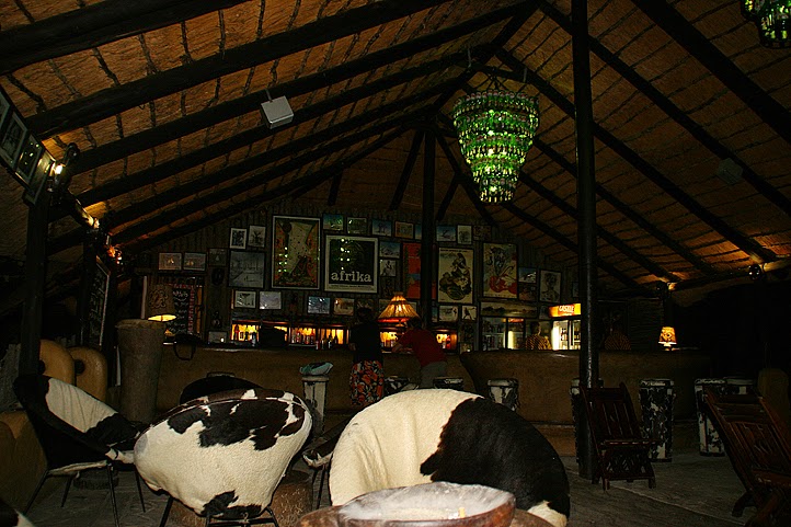 Nach vier duschfreien Tagen fühlen wir uns nun wir neugeboren und zu weiteren Schandtaten bereit. Diese jedoch beschränken sich lediglich auf eine entspannte Zubereitung des Abendessens nebst dessen Einnahme und einen anschließenden Gang zur urigen Bar des Camps, wo wir uns in rustikal mit Kuhfell bezogene Loungesessel plumpsen lassen und einen Tagesabschlussdrink zu uns nehmen. Ein Gefühl wohliger Faulheit greift nach uns, die Bar und ihre Gestaltung lädt eigentlich freundlich zum Verweilen ein. Nur leider sind wir so verwöhnt von den vergangenen Wochen der Ruhe und Stille, dass uns die laute Musik bald in die Flucht schlägt. Und nicht nur die: auch die kratzigen Borsten der von vielen Touristenhintern abgenutzten Kuhfelle, die sich recht unangenehm in unsere Oberschenkel bohren, lassen bei uns Vieren nicht die ersehnte Gemütlichkeit aufkommen. So tappern wir nach nur einem Drink zurück zu unserem Lager und genießen die dortige Musikfreiheit – und bald auch unsere kuscheligen Schlafsäcke.