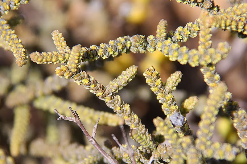 Und es gibt immer noch so viel zu sehen. Heinz und ich entdecken zum Beispiel ein strauchiges Mittagsblumengewächs, das, neben den normalen, charakteristischen Blättern auch seltsam symmetrische, rosa überhauchte Blattrosetten an den Zweigspitzen trägt. Was ist das denn? Die Blattform, die Struktur der Rosetten passt in keinster Weise zur Trägerpflanze, dennoch sind sie eindeutig vorhanden. Zur Sicherheit überzeugen wir uns nochmals, dass hier nicht zwei Pflanzen ineinander gewachsen sind. Nein, es ist ein und das selbe Gewächs, auf dem hier normale Blätter und eben diese atypischen Rosetten gedeihen. Eine weitere Rechercheaufgabe erwartet mich… Und ich finde es tatsächlich heraus, allerdings erst eine ganze Weile später, als unser Urlaub schon lange vorüber ist: es handelt sich hierbei um eine Blattwucherung, die durch Gallwespen verursacht wurde. Doch auch die mir im Internet zur Seite stehenden Experten vermuten das nur und fragen mich, ob ich eine Sektion der Rosette vorgenommen hätte. Dann erst könne man ganz sicher sein. Nachurlaublich im zuständigen Kleinhirnlappen vermerkt: Skalpell mitführen und alles aufschneiden, was befremdlich aussieht! Für die nächste Tour reduzieren sich die Wechselklamotten auf ein bedrohliches Minimum, fürchte ich. Pipettenflasche, Ellbogenschützer, Skalpell. Was kommt da noch alles an unabdingbarem Equipment dazu??? Es gibt sicherlich noch einiges, was uns Freude machen und unseren Forscherdrang erleichtern würde… Zwei Selbstschusskameras haben wir ja schon, die wir immer mitschleppen, aber da sind auch noch Nachtsichtgeräte, Infrarot-Wärmesuchgeräte, USB-Mikroskope und derlei Schnickschnack mehr, mit dem wir immer wieder liebäugeln. Irgendwann jedoch wäre dann die Kapazität unseres Urlaubsgepäcks doch erschöpft und vor lauter technischem Gerät, das permanent in Bedienung ist, käme sicher auch das reine Sehen und Genießen ins Hintertreffen. Lieber also machen wir die Augen auf und freuen uns an dem, was wir zu sehen bekommen, ohne es sofort zu sezieren, zu mikroskopieren oder anderweitig zu traktieren. Und viele Schätze am Wegesrand würden es uns zudem sicher verübeln, rückten wir ihnen mit derlei Equipment auf die Pelle.
