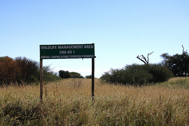 Und jetzt, da wir den Nationalpark verlassen haben, verändert sich auch die Landschaft. Natürlich hauptsächlich deswegen, weil hier Menschenhand im Spiel ist. Schnurgerade zieht sich eine breite Schneise durch das Gelände, eine gerodete Trasse bar jeglichen Buschwerks, die im Falle eines Brandes das Überspringen der Flammen von einer Seite auf die andere verhindern soll. Die Betonung liegt auf soll. Ob das im Moment allerdings auch in der Praxis funktionieren würde, können und wollen wir so nicht unterschreiben. Denn rechts und links der sandigen Piste, die wie ein Rückgrat durch die Mitte der Trasse führt, steht – dicht und hoch – knochentrockenes Gras. Das würde brennen wie Zunder. Aber es brennt ja gerade nicht. Nur das von uns so geliebte Gras ist leider erneut omnipräsent, behindert unsere Sicht und, mit Verlaub, ödet uns wirklich an. Stoisch, ja gelangweilt, juckeln wir dahin, machen hin und wieder eine kleine Pause, steigen aus, sehen nichts, steigen wieder ein, fahren weiter. Lange schon haben wir das KD1, eine Wildlife Management Area erreicht, als sich endlich wieder ein wenig Leben vor uns zeigt. Es ist eine Straußenfamilie, die durch das Gras der Schneise schreitet. Mama, Papa und fünf Kinder. Die kleine Familie fühlt sich durch unser herannahendes Auto bedroht und tut nun etwas, was jeglicher (menschlichen) Logik entbehrt: auf der Flucht vor uns und unserem Blechungetüm sausen die Laufvögel auf die hindernisfreie Fahrspur – in der verständlichen, aber völlig widersinnigen Hoffnung, sich dort möglichst schnell vor uns in Sicherheit bringen zu können. Natürlich geht der Plan nicht auf. Panisch rennen die Tiere vor uns her. Fahren wir langsamer, entspannen sie sich ein wenig, geben wir Gas, werden auch sie schneller, halten wir an, bleiben sie ebenfalls stehen. Gerne würden wir sie dazu animieren, die Fahrspur zu verlassen, bleiben den Vögeln deshalb auf den Fersen, aber sie weichen nicht einen Meter zur Seite. Wir sind ratlos. Irgendetwas muss passieren, zumal das kleinste der Straußenkinder immer weiter zurückbleibt, mehrmals strauchelt und, der weit geöffnete Schnabel zeigt es deutlich, bereits völlig außer Puste ist. Wir drosseln gerade unser Tempo, um dem Nesthäkchen Gelegenheit zum Aufschließen zu geben, als das Muttertier plötzlich nach rechts ausbricht und in den Büschen verschwindet. Papa Strauß folgt ihr kurz darauf, während die Jungen kopflos weiterrennen. Wir stoppen, die Kleinen kommen zur Besinnung, orientieren sich kurz und folgen schließlich ihren flüchtigen Eltern in den Schutz des Gestrüpps.