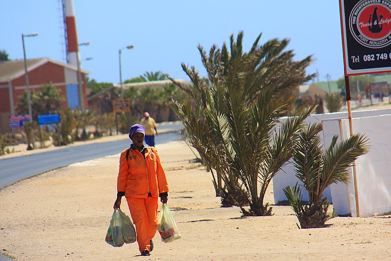 Minuten später sind wir, erleichtert durchatmend, erneut auf Piste, raus aus Springbok, unterwegs nach Steinkopf, das wir rund vierzig Kilometer danach erreichen. Hier geht es nun links, Richtung Westen, über den Anenous Pass, dessen gut ausgebaute Kurven und spektakuläre Aussichten mich, wie auf der letzten Tour bereits, abermals begeistern. Allerdings ist es diesmal erheblich trockener und somit auch karger als vor zwei Jahren um die selbe Zeit. Das hat, neben Heinz‘ und meiner persönlichen Enttäuschung, die wir bedauernd zur Kenntnis nehmen, dennoch auch einen wirklichen Vorteil: wir preschen durch, ohne anzuhalten, ohne auch nur einmal das Gefühl zu haben, etwas zu verpassen. Stattdessen blättert Heinz interessiert in seinen neu erworbenen Magazinen und vertreibt uns die Zeit auf den nächsten neunzig Kilometern bis Port Nolloth, indem er uns diverse Artikel, den Fahrlärm übertönend, vorliest. Gut informiert über Glanzstare des südlichen Afrika, die umfassende Gattung der Sperlingsvögel und mehr oder weniger effektvolle Schutzmaßnahmen für seltene Federträger der südlichen Hemisphäre, laufen wir schließlich in Port Nolloth ein – und haben Hunger.