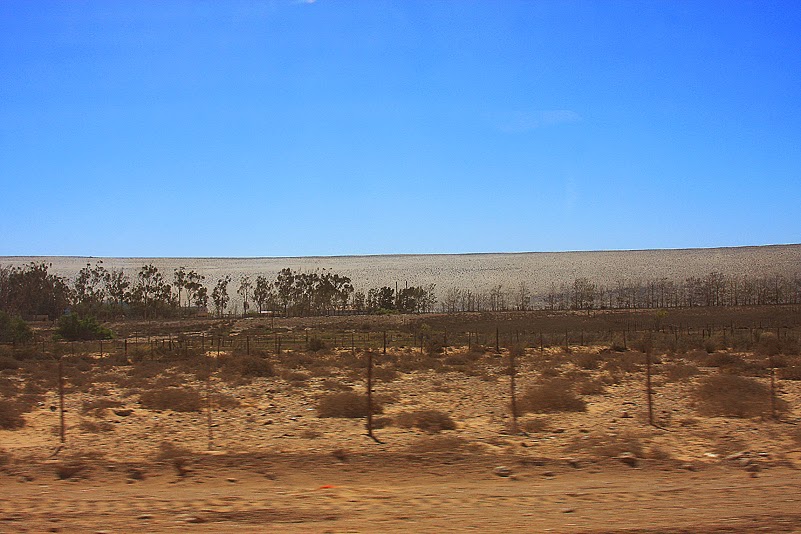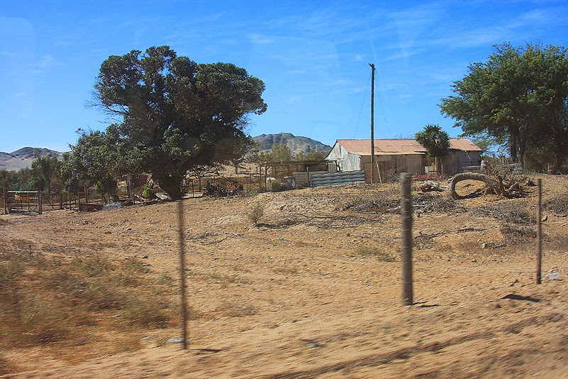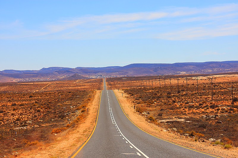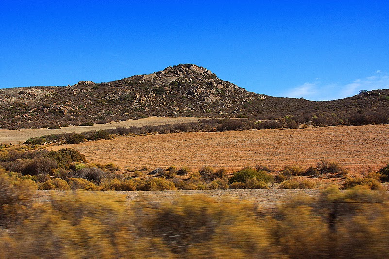 Dann geht sie los, die Tor-Tour; rund 400 Kilometer liegen nun vor uns, lange, öde, gleichförmige vierhundert Kilometer, die dankbarerweise größtenteils über Teer führen. Allerdings sind solche Teerstrecken ein recht zweischneidiges Schwert, denn einerseits geht es auf glattem, kurvenarmem Untergrund logischerweise rasch voran, andererseits aber sind solche Pads einfach nur schnarchlangweilig und erfordern höchste Konzentration vom Fahrer. Doch auch wir Mitfahrer können uns nur mühevoll wachhalten: die Landschaft fliegt an uns vorbei, an und für sich schöne Farben und Formen verschmelzen zu einem uninteressanten Sichtbrei, während uns uns nach wie vor die Zeit im Nacken sitzt. Wir möchten, wir wollen, wir müssen heute noch den Richtersveld Nationalpark erreichen, wo wir einen Platz am De Hoop-Camp gebucht haben: da aber müssen wir erst mal hinkommen…