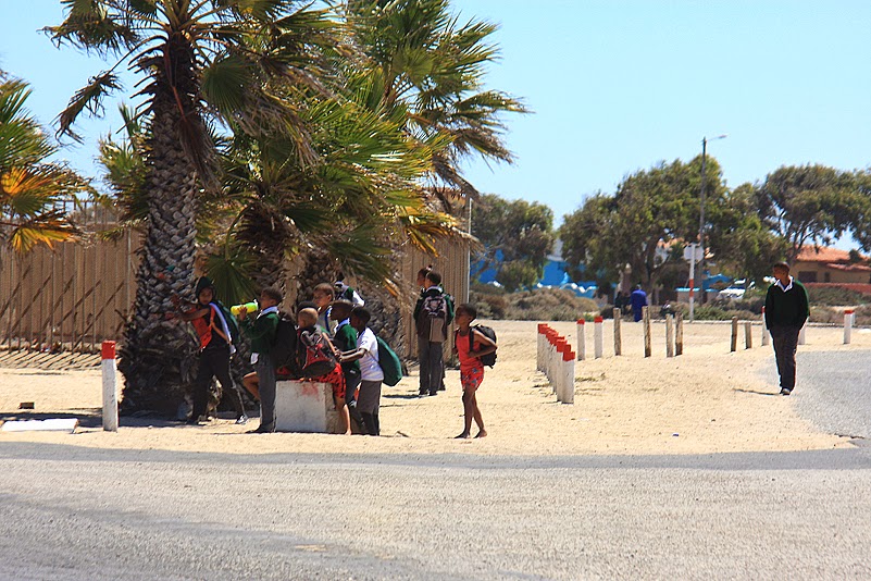 Doch bis auf wenige labberige Fritten und ein kleines Stückchen Fisch ist nichts mehr im Beutel. „Ja, danke, Hauptsach’ die Möwen hatten genug!“, zischt Heinz mich an. Uih, jetzt ist mein Schneck aber richtig sauer! Ich bin mir zwar irgendwie keiner, gleichzeitig jedoch jeder Schuld bewusst: ich habe alles weggefressen, die Vögel nebenbei noch generös versorgt – aber leider nicht auf Heinz geachtet. Tja, so war es. Verantwortlich für diese angespannte Stimmung aber ist, meiner Meinung nach, der lange Fahrtag, unter dem wir alle leiden. Man wird unaufmerksam, reizbar, störrisch, ist genervt, reagiert empfindlich. Und fallen unter solchen Umständen Begebenheiten zusammen, wie eben jene seit unserer Ankunft in Port Nolloth, dann gibt es Opfer. In diesem Falle bin ich schuld, obwohl auch ich nur ein Opfer der Umstände bin. Das lässt sich jedoch vorerst nicht mehr geradebiegen. Schneck schmollt, ich fühle mich missverstanden, Annette und Jochen sehen sich gänzlich unbeteiligt, spüren die Missstimmung aber dennoch und jeder gibt jemand anderem die Schuld. Mann, wie kompliziert! Lasst uns doch bitte einfach weiterfahren und diesen Tag rumbringen. Bald hat uns der Busch wieder und da ist die Welt hoffentlich in alter, harmonischer Ordnung!