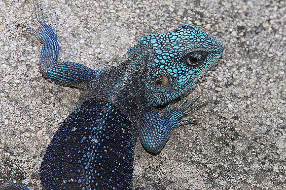 Wir kurven in das Gelände dieser dem Flughafen sehr nahen Unterkunft, die, umgeben von einer hohen Mauer, eine gewisse Sicherheit vermittelt, ohne gefängnisartig zu wirken. Auch das in grellen Orange- und Pinktönen gestrichene Hauptgebäude, vor dem einige jugendliche Rucksackreisende entspannt rumfläzen, trägt zu einem angenehmen Willkommensgefühl bei. Und als wir dann, in einem lauschigen Eck an der Mauer, unser wohlvertrautes Equipment erspähen, fühlen wir uns schließlich endgültig angekommen: Annette und Jochen haben bereits alles aufgebaut – den Klapptisch, die Campingstühle, die Küchenkisten und alle Zelte stehen, auch die unsrigen. Wie zuvorkommend und schön ist das denn! Strahlend danken wir unseren fleißigen Freunden, die uns damit jeglicher Eile enthoben haben. Entspannt zerren also wir unser Gepäck aus den Autos, werfen uns in dem Klima angepasste Klamotten, lassen uns dann alle zu einem Willkommens-Drink in die Klappstühle sinken und nehmen uns gemütlich Zeit, das Gefühl des Angekommenseins zu genießen. Nebenbei tauschen wir natürlich Neuigkeiten aus, berichten über dies oder jenes, doch in erster Linie ergehen wir uns in dem wonniglichen Bewusstsein, wieder in Afrika zu sein – mit Haut und Haaren, mit Augen und Ohren. Unsere geplagten Winterfüße atmen vergnügt in luftigen Sandalen, jauchzende Zehen kämpfen dabei fröhlich mit zudringlichen Ameisen, eine warm-feuchte Spätnachmittagsbrise umschmeichelt wohltuend unsere blassen Wangen, in einem türkis gestrichenen, von Rostflecken durchsetzten Zierbrunnen stehen Hagedasch-Ibisse und geben ihr typisch atonales Krächzen von sich, in dem Bäumen hoch über uns kreischen Bindenlärmvögel, auf der Grundstücksmauer tummeln sich tarnfarbene Eidechsen und unfassbar blaue Agamen – und wir sind da – mittendrin!