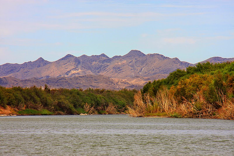 Während wir nun die steile Pass-Straße nach unten holpern und dabei stets neue, interessante Pflanzen erspähen, genießen wir trotz aller Wehmut auch den fantastischen Ausblick auf die Niederungen des Oranje-Tals, dem wir nordwärts, unvermeidlich, wieder entgegenstreben. Malerische Bergketten begleiten uns hinab auf den Streckenabschnitt, auf dem wir bereits vor vier Tagen, an der Parkgrenze entlang, gen Sendelingsdrif gefahren sind. Damals hatten wir es eilig, waren stimmungsmäßig leicht angeschlagen, heute hingegen sind Heinz und ich völlig entspannt, immer noch im Banne des Helskloof Passes. Für Jochen und Annette aber zählen nach wie vor die Kilometer, der Grenzübertritt nach Namibia – und das, obwohl es noch nicht mal zwölf Uhr mittags ist. Nein, wir verstehen schon: jeder hat so seine Prioritäten und alle wollen gleichgewichtig erfüllt werden. So also treffen wir gegen ein Uhr mittags am Hauptcamp des Richtersveld Nationalparks ein, das gleichzeitig – zu An- und Abmeldung aus dem Park – auch alle Stationen für den Grenzübertritt ins Nachbarland Namibia bereithält.