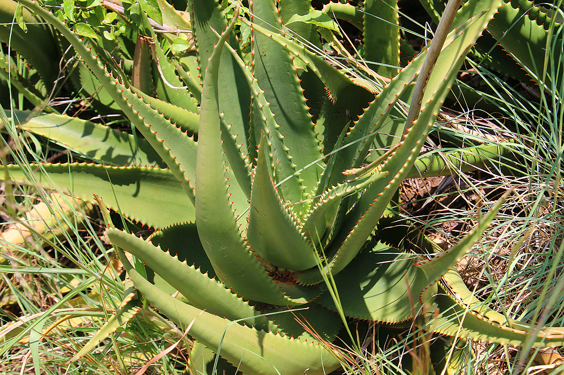 Ah, ab hier soll es jetzt, laut Reiseführer, also reizvoll werden! Gespannt rollen wir weiter, Kilometer um Kilometer, allein das Versprechen auf ansprechende Landschaft will sich nicht erfüllen. Verbuschtes Gelände, öde Grasflächen, langgezogene Dörfer mit zahlreichen, abgetakelten Ziegelgebäuden, vermüllte Gräben ziehen an uns vorüber, dann wieder umfängt uns menschenleerer, vom Sand der Straße verstaubter Busch, hin und wieder blockiert eine Zebu-Herde den Weg, ansonsten gibt es nicht viel zu sehen, was unsere Augen erfreuen würde. Hui, wenn diese Strecke als reizvoll bezeichnet wird, wie mag dann wohl die östliche Alternativroute aussehen? Wir wollen es gar nicht wissen, sehen statt dessen zu, die restlichen Kilometer bis Hoima hinter uns zu bringen und versuchen, es uns die verbleibende Strecke so angenehm wie möglich zu machen. Dazu gehört natürlich auch eine Pinkelpause. Und, oh Wunder, kaum sind wir aus den Autos gestiegen und im näheren Busch verschwunden, entdecken Heinz und ich einige Aloen. Heinz‘ botanisches Interesse an diesen Pflanzen ist natürlich sofort geweckt, meines hingegen bewegt sich heute eher im medizinischen Bereich. Aloen sondern nämlich bei Verletzung ihrer Epidermis ein kühlendes Gel ab und das will ich mir und meinen quälenden Tsetsestichen jetzt zunutze machen – es muss ja nicht unbedingt immer Aloe vera sein. Entschlossen säble ich also ein Stück eines Blattes ab und bestreiche meine juckenden Bisse mit dem leicht grünlichen Saft. Ah, das tut gut! Leider aber nur so lange, bis die im Gel enthaltene Flüssigkeit verdunstet ist. Danach juckt es wie zuvor, ich sehe aus, als ob ich grüne Beulenpest hätte und, zu allem Überfluss, kleben die mit Aloen-Saft behandelten Stellen wie mit Sprühkleber behandelt. Klasse! Seufzend verbringe ich deshalb die nächste halbe Stunde damit, die klebrigen Flecken notdürftig abzuwaschen und besonders hartnäckige Reste wegzurubbeln.