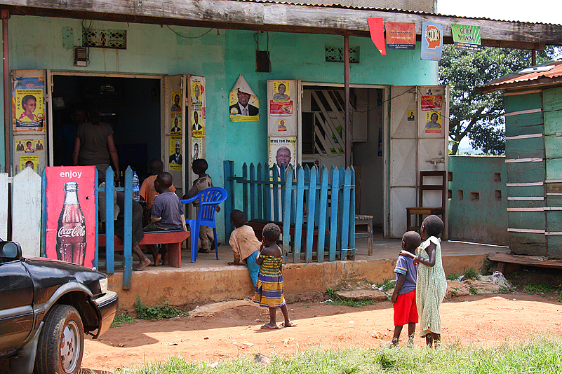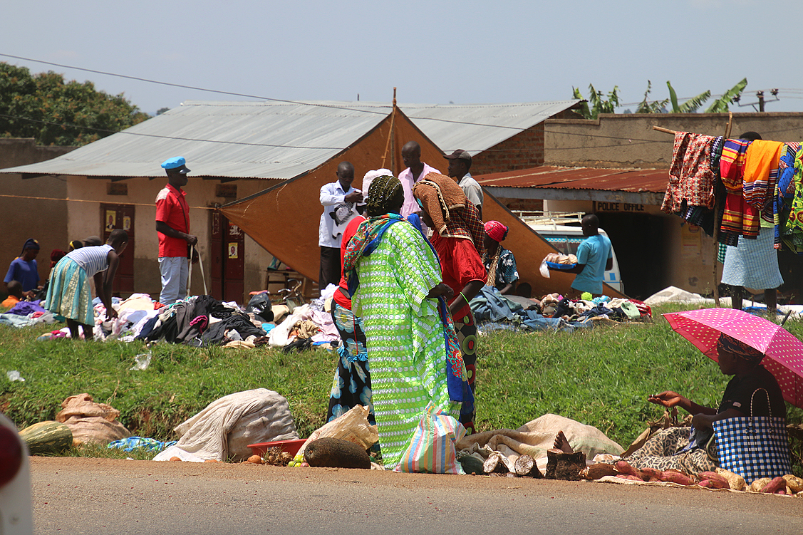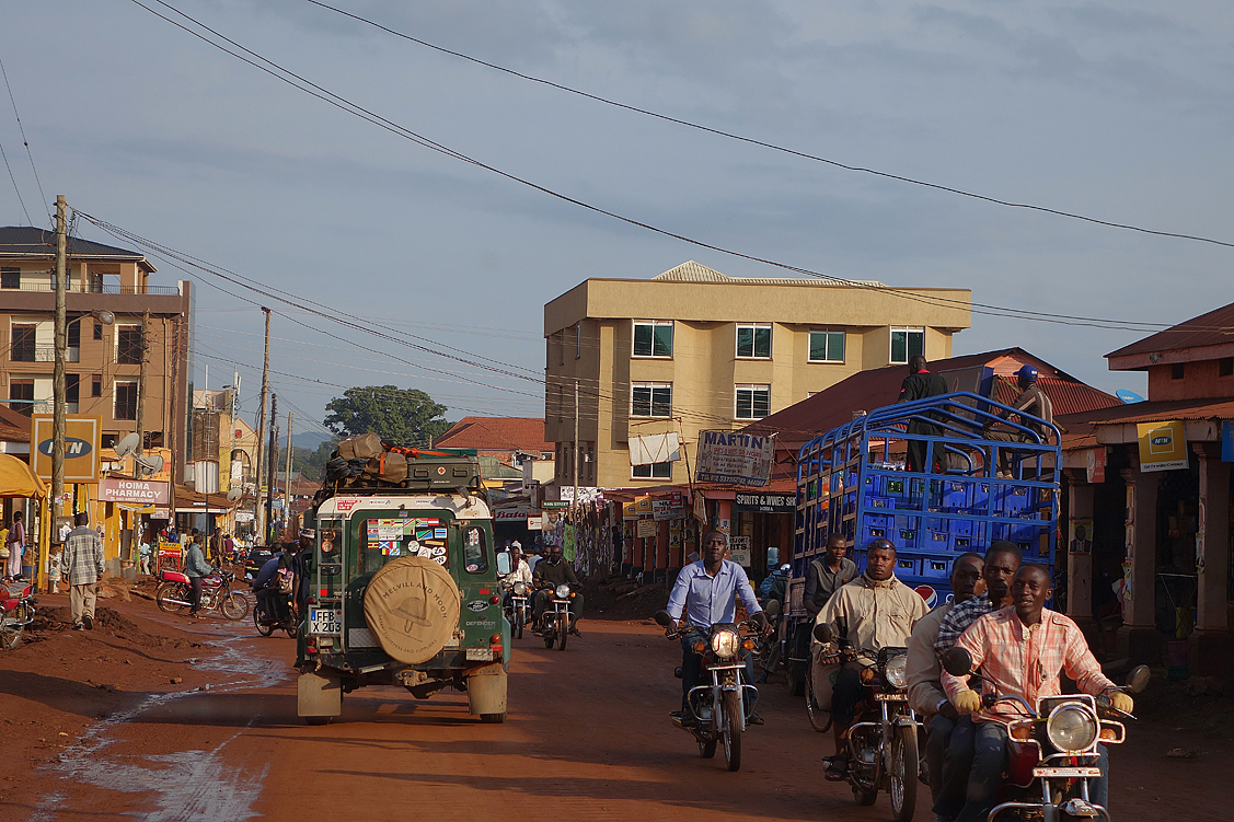 Mit gefüllten Mägen und froh, dem Trunkenbold entronnen zu sein, rollen wir weiter, kaufen unterwegs hier und da noch ein wenig Gemüse ein und erreichen schließlich am frühen Nachmittag das 60.000-Einwohner-Städtchen Fort Portal, wo wir Geld vom örtlichen Kreditinstitut abheben und weitere Einkäufe tätigen. Während Annette und Jochen gerade in einem ziemlich gut sortierten Laden zugange sind und wir anderen untätig auf der Straße rumlungern, gehe ich in mich: mein linker Oberarm ist im Laufe der letzten Tage heftig angeschwollen, pocht schmerzhaft vor sich hin und glüht wie eine Ofenplatte – ein Tsetsestich… Seit heute Morgen ist zwar eine leichte Besserung zu spüren, aber trotzdem, so beschließe ich, könnte ich ja sicherheitshalber mal nach einer Apotheke Ausschau halten. Gesagt, getan. Sondierend trabe ich die Hauptstraße entlang, balanciere über tiefe Abflussgräben, äuge in alle Geschäfte. Nichts. Auch Passanten, die ich frage, können mir nicht weiterhelfen. Ich überquere die stark befahrene Straße und wiederhole die Prozedur auf der anderen Seite. Wieder nichts. Nun ja, es soll offenbar nicht sein und muss eben auch so gehen. Das wird es auch, beruhige ich mich selbst, denn ich hatte lediglich nach einer simplen, entzündungshemmenden Salbe gesucht; falls es entgegen aller persönlichen Empfindungen trotzdem nicht besser werden sollte, lauern ja immer noch genügend „schwerere Geschütze“ in meiner mitgebrachten Apotheke. Versöhnlich tätschle ich meinen heißen, geschwollenen Oberarm, rede ihm gut zu, lege das Projekt ugandische Apotheke ad acta und wechsle erneut die Straßenseite.