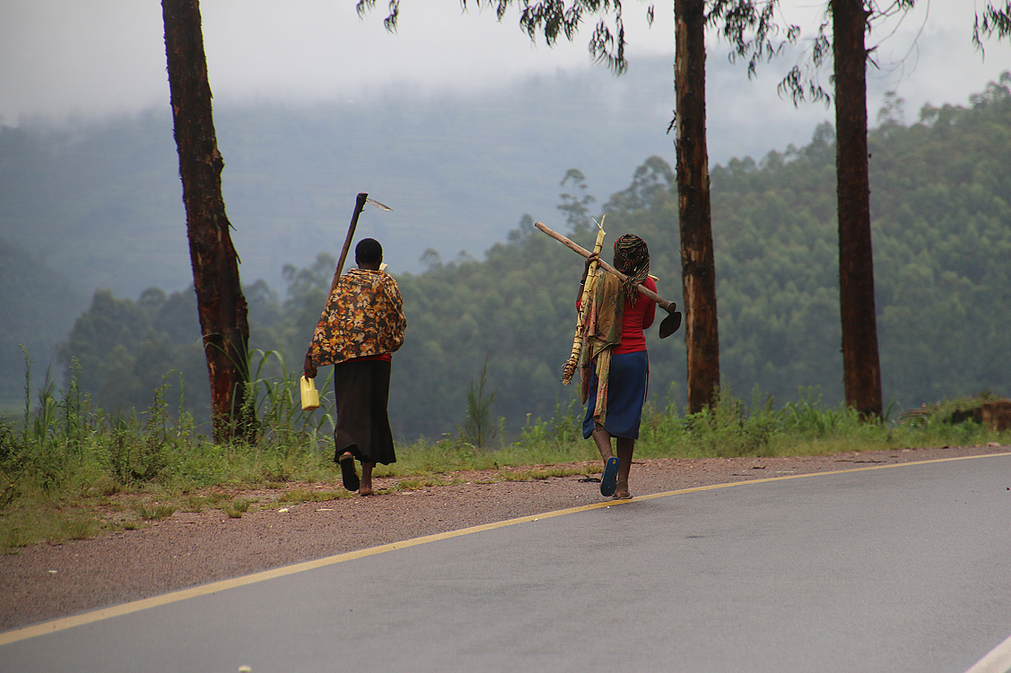 Doch es ist nicht nur das Plastiktüten-Verbot, das Ruanda in dieser Gepflegtheit glänzen lässt, es gibt noch eine andere Besonderheit, die absolut bemerkenswert ist: in unseren Breiten organisieren Umweltschutzorganisationen ja ein- oder zweimal im Jahr sogenannte Ramadamas, bei denen die interessierte und willige Bevölkerung dazu aufgerufen wird, Wald und Flur nach Müll abzusuchen und von diesem zu befreien. In Ruanda heißt eben jenes Pendant zum Ramadama Umuganda, was übersetzt gegenseitige Hilfe, Zusammenhalt bedeutet. Umuganda jedoch wird nicht nur zweimal pro Jahr praktiziert, sondern an jedem letzten Samstag im Monat. Und es nehmen nicht nur ein paar „Umwelt-Spinner“ daran teil, es gehört für die ganze Bevölkerung zum guten Ton, sich nach den jeweiligen persönlichen Möglichkeiten einzubringen und tatkräftig mit anzupacken. Umuganda, gemeinschaftliches Großreinemachen – eine fantastische Sache, die das Land in einladender Sauberkeit erstrahlen lässt, der Umwelt zugute kommt, die Menschen stolz macht und somit auch hilft, das immer noch präsente Trauma des über 20 Jahre zurückliegenden Völkermordes zu bewältigen. Freude am Dasein durch ein selbst geschaffenes, gepflegtes Umfeld, Wertschätzung für sich selbst und seine Mitmenschen; ein Konzept, das augenscheinlich hervorragend funktioniert! Ich bin, gelinde gesagt, begeistert und spätestens jetzt gespannt wie ein Flitzebogen, ob das in einer Großstadt wie Kigali genauso ernsthaft umgesetzt wird, wie auf dem Land.