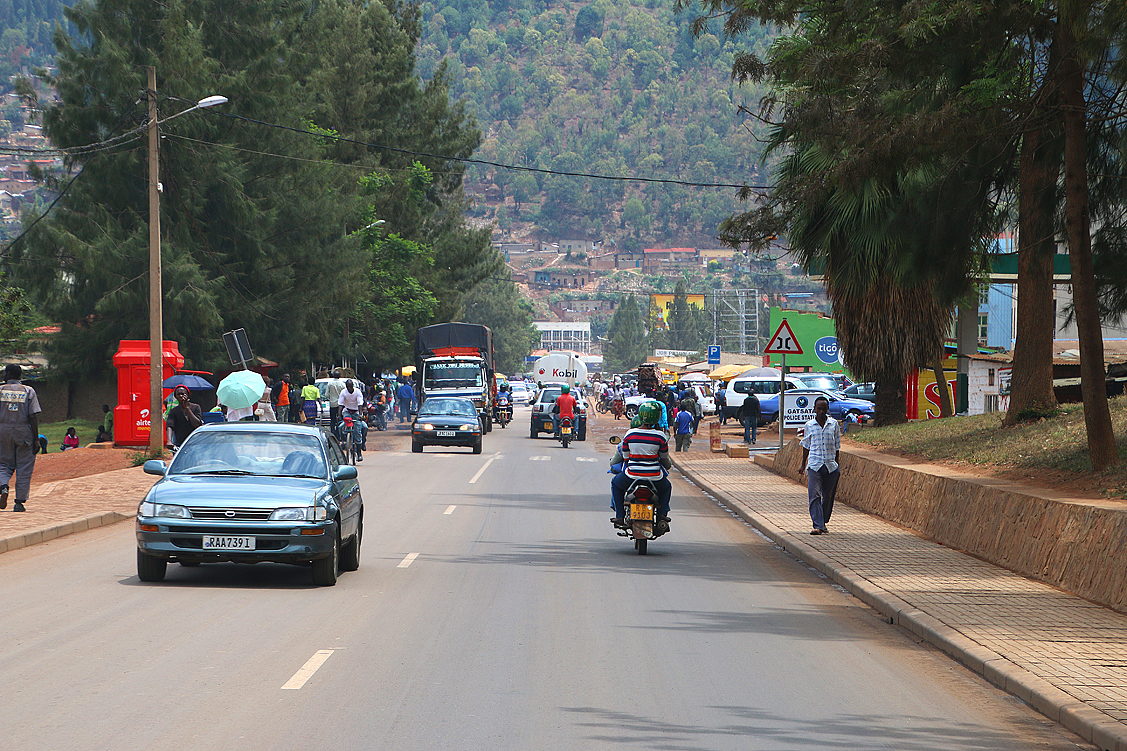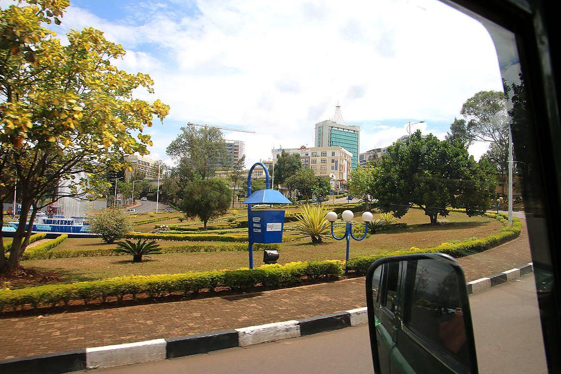 Und ich muss nicht lange warten. Kurz vor Mittag erreichen wir die Hauptstadt Ruandas, die wir schon lange vorher mit einer imposanten Skyline auf einer Hügelkette vor uns thronen sehen. Wir durchfahren immer dichter besiedelte Vororte, der Verkehr nimmt zu, wir schrauben uns nach oben, dieser Millionenstadt entgegen, tauchen in sie ein, doch das bereits gewonnene Bild bleibt bestehen. Es ist sauber, gepflegt, geordnet, der Verkehr, obwohl dicht, fließt in äußerst geregelten Bahnen über perfekt geteerte Straßen, man sieht keine Spur von Chaos, hört kein Hupen, jeder hält sich in höchst zivilisierter Weise an die Verkehrsregeln und man könnte wirklich denken, man sei in einer nordeuropäischen Großstadt gelandet, die gerade fieberhaft nach dem Verkehrsteilnehmer des Jahres sucht, um ihn anschließend mit einer Million Euro zu belohnen. Unglaublich für eine Stadt dieser Größe und noch unglaublicher für eine afrikanische Großstadt! Und dann die Ampeln: über den Stadtautobahnen verrichten keine schnöden Rot-Gelb-Grün-Verkehrslichter ihren Dienst, sondern High-Tech-Leuchten, die sekundengenau anzeigen, wie lange noch Rot ist oder wann die grüne Phase endet. Ich bin geflasht!