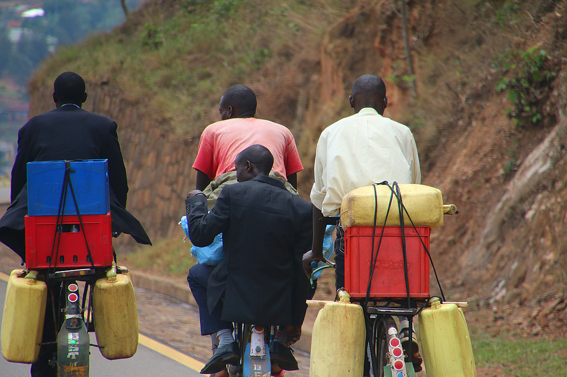 Hurtig entfernen wir uns aus dem Dunstkreis des finsteren Beamten, der schon die nächsten Bolla-zu-Prüfenden anschreit, schlichten uns erneut in die Autos und flüchten Richtung Kigali. Erstaunlich schnell haben wir den Grenzstau hinter uns gelassen und rollen nun auf ruhiger Landstraße dahin. Dort bietet sich uns das typische Bild: Pkws, Lkws, schwer beladene Radfahrer – aber irgendwas ist trotzdem anders. Ich komme jedoch nicht drauf, so sehr ich auch nachdenke und analysiere. Erst, als wir das zweite oder dritte Dorf passiert haben, fällt es mir wie Schuppen von den Augen: es ist unglaublich sauber hier! Nirgendwo liegt Müll in den Straßengräben, es flattern keine Plastiktüten im Gebüsch, und nicht mal die üblichen Zuckerrohrfasern, die von eifrigen Kauern und Knusperern überall sonst achtlos ausgespuckt werden, sind zu sehen. Ich bin erstaunt. Dann aber erinnere ich mich, im Vorfeld dieser Tour etwas im Reiseführer gelesen zu haben, was diese verblüffende Sauberkeit erklärt. In Ruanda gibt es seit mehreren Jahren ein striktes Plastiktütenverbot. Anfangs wurde dieses Verbot von vielen für undurchführbar gehalten, doch die Ruander setzten es erfolgreich durch, indem sie konsequent Alternativen anboten. Supermärkte und andere Geschäfte wurden dazu angehalten, ihren Kunden Papiertüten zur Verfügung zu stellen, die das selbe oder sogar weniger als Plastiktüten kosteten. Weiterhin arbeitete die Umweltbehörde mit vielen Frauengruppen zusammen, die Beutel aus Baumwollstoff herstellten und diese überall zu günstigen Preisen verkauften. Aufklärungskampagnen in Funk, Fernsehen und in Schulen sorgten für die Verbreitung des nötigen Basiswissens und Verständnisses bei der Bevölkerung. Das durchdachte Konzept war so effektiv, dass Ruanda nun seit vielen Jahren tatsächlich plastiktütenfrei ist. Und ja, es werden sogar bei einreisenden Personen Gepäckkontrollen durchgeführt; finden die Grenzer Plastiktüten, werden diese sofort konfisziert und entsorgt! Das hatte ich in der Tat beinahe wieder vergessen, aber jetzt, da wir durch dieses wie geleckt wirkende Land rollen, fällt es mir natürlich wieder ein. Und nachträglich fährt mir noch ein leichter Schrecken in die Glieder, denn unsere Fahrzeuge sind voll mit Plastiktüten – gesammelte Einkaufsbeutel, die wir als Mülltüten nutzen, Plastiksackerl, in denen ich meine Klamotten verstaut habe und Tüten, die unsere erworbenen Souvenir-Schätze vor Staub und Feuchtigkeit schützen. Da hatten wir ja richtig Glück, dass der Bolla-Typ nicht gleichzeitig als Plastik-Wauwau unterwegs war; der hätte uns sicher aufs Übelste auseinandergenommen!
