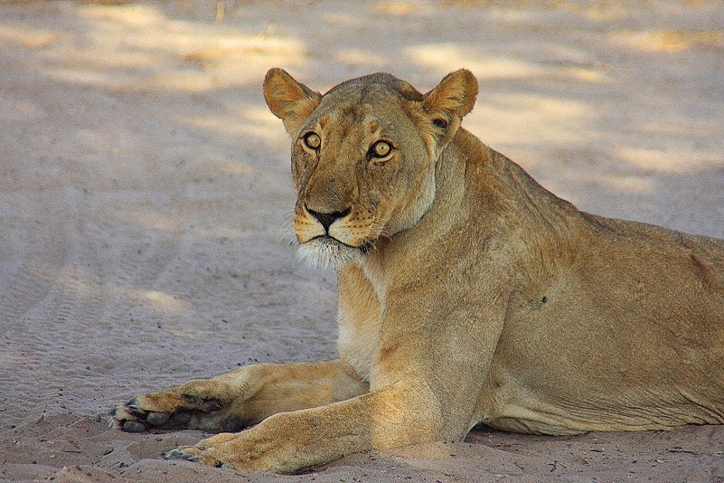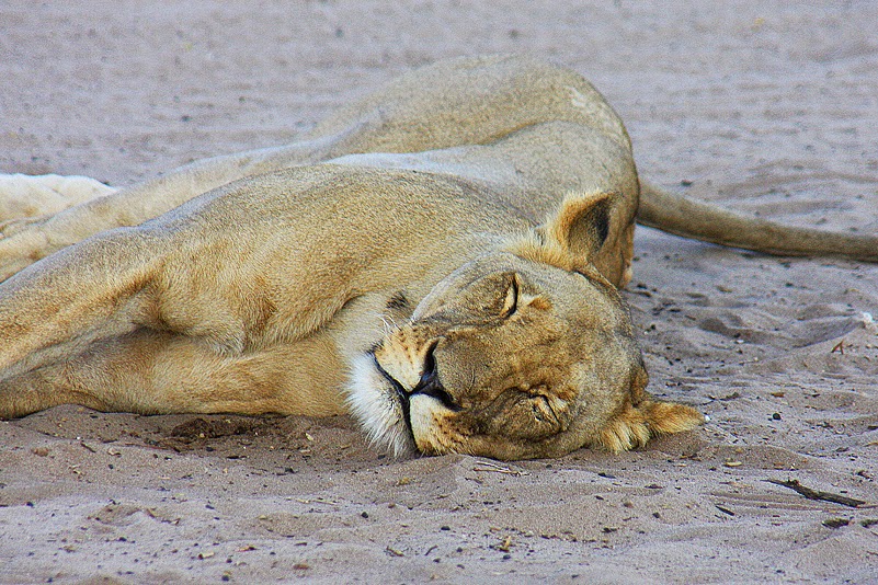 Annette und Jochen jedoch haben gar kein richtiges Ohr für die Bitte der Südafrikaner, verdrängen die auf uns zukommenden Konsequenzen – denn die beiden haben Wort vernommen, das alle anderen Sorgen auszulöschen scheint: LÖWEN! Fünf Buchstaben, die offenbar magische, nahezu unwiderstehliche Anziehungskraft ausüben. L-Ö-W-E-N! „Da müssen wir hin!“ Sagt Annette – und auch Jochen hat leuchtende Augen. Heinz und ich hingegen haben hauptsächlich das Wort „sterbend“ im Hinterkopf und möchten deshalb dieser Veranstaltung nur zu gerne fernbleiben. Doch wir haben leider nur ein Auto, was Heinz und mir gewisse sicherheitsbedingte Daumenschrauben ansetzt; uns ist nämlich noch nicht klar, wie weit die einzelnen Campsites tatsächlich voneinander entfernt sind. Also fahren wir aus einem gewissen Sicherheitsbedürfnis heraus, aber dennoch schweren und zweifelnden Herzens mit. Und, oh Gott – die schlimmsten unserer Befürchtungen übertreffen sich selbst, dort auf der feliden-okkupierten Site 3.