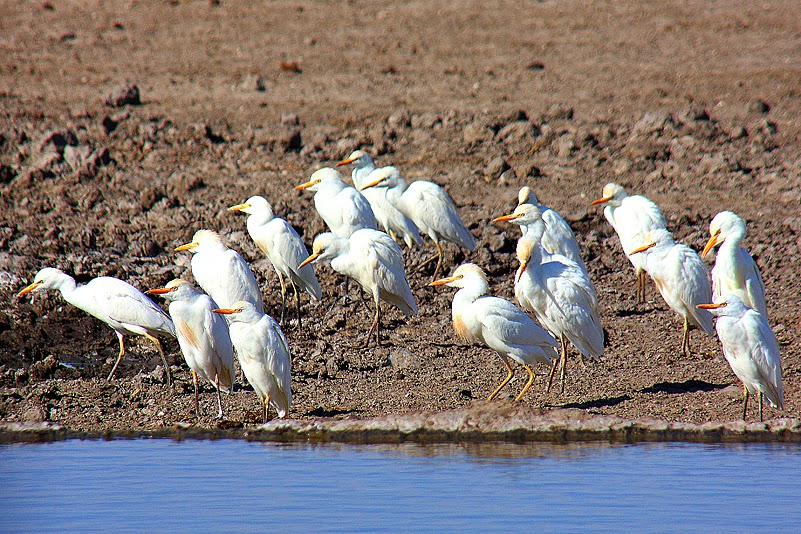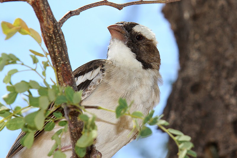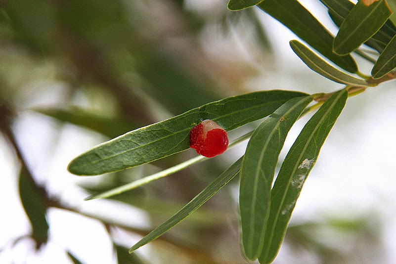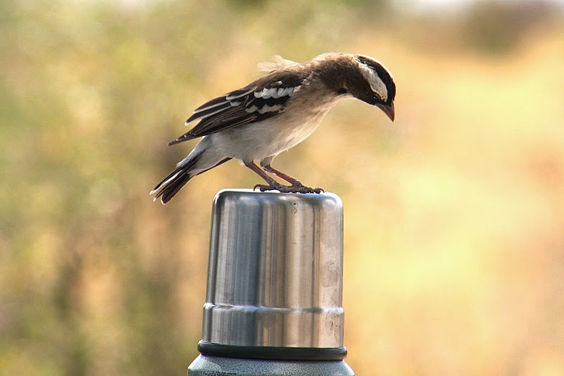 Und die sind mannigfaltig: auf den niedrigen Bäumen, die unseren Rastplatz beschatten, tummeln sich viele Vögel, vorwiegend Mahaliweber. Sie ziehen gerade ihre Jungen auf und fliegen dabei emsig umher, um Fressbares für ihren Nachwuchs zu sammeln. Im Zuge dessen müssen natürlich auch wir und unsere Brotzeit auf’s Genaueste inspiziert werden. Hingerissen von der unverbildeten Neugier der Vögelchen, vergessen wir beinahe, unseren Mittagssnack zu uns zu nehmen. Außerdem bewundern wir einige strotzende, früchtetragende Misteln, deren Verbreitungsstrategie sich hier überdeutlich demonstriert: die Samen des pflanzlichen Parasiten sind von einem Fruchtfleisch umhüllt, das in appetitlichem Rot leuchtet und somit fast alle Fresswilligen anspricht (uns nicht ausgeschlossen). Sobald aber die rote Beerenhülle durchstoßen wird, gibt sie ein Fruchtfleisch frei, das extrem klebrig ist und auf allem haften bleibt, was da des Weges kommt. Der Vogelschnabel zum Beispiel trägt die Frucht fort, sie fällt herunter, bleibt, mit viel Glück, am nächstbesten Ast kleben und beginnt, mit noch mehr Glück, auszutreiben. Faszinierend! Doch das sind nicht die einzigen Pflanzen, die hier unter extremen Bedingungen erfolgreich gedeihen. Wir, die wir ja frisch aus der Sukkulenten-Karoo kommen, müssen uns erst wieder an diese völlig andere botanische Welt gewöhnen, die nicht minder interessant ist – wenngleich wohl auch nur ich das so empfinde…