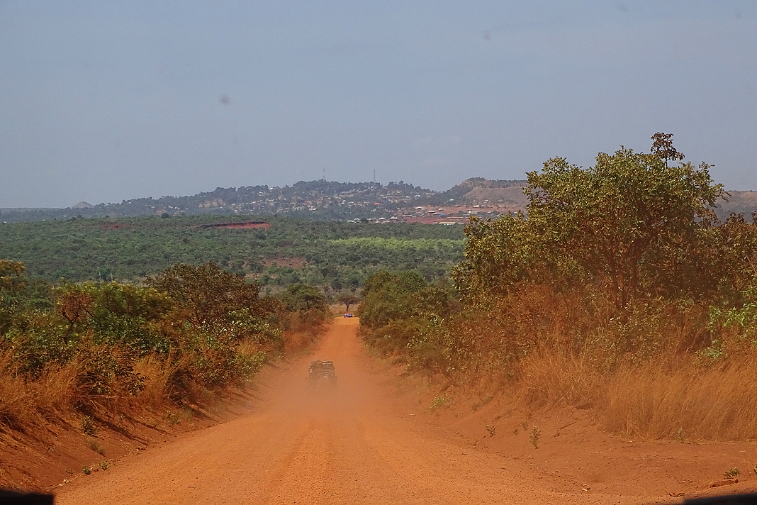 So wandere ich also eine ganze Weile über den staubigen Hof der Tankstelle, halte hier und da ein Pläuschchen mit Fahrgästen eines tankenden Minibusses und schlage auf vergnügliche Art und Weise die Zeit tot. Als ich schließlich wieder zu meinen Reisefreunden zurückkehre, ist der Schatten des Zapfsäulendachs bereits ein paar Meter weitergewandert und unsere Jungs schwitzen sich in der prallen Sonne einen ab. Doch immerhin sind die Lichtmaschinenteile alle wieder an ihrem vorgesehenen Platz, Jochen gibt sich zuversichtlich und schließt mit einem zufriedenen Grunzen die Motorhaube. Heinz und er waschen sich noch die rabenschwarz verschmierten Hände, dann gibt Jochen das Signal zum Aufbruch. „Das sollte halten! Der Freilauf ist zwar ganz schön ausgenudelt, aber ich hab ordentlich Knetstahl reingetan. Da kann jetzt nichts mehr schlagen.“ Nun ja, sein Wort in Gottes Ohr! Hoffnungsfroh besteigen wir unsere Fahrzeuge und warten gespannt auf den Klang des weißen Landys beim Anlassen. Hui, klingt tatsächlich gut! Vorsichtshalber aber lassen wir Annette vorausfahren, um im Notfall gleich bei ihr zu sein. Doch das Auto läuft problemlos und bald erreichen wir den auf der Karte eingezeichneten Ort namens Kiboko. Noch an der Tankstelle hatten wir beschlossen, uns hier ein Quartier für die heutige Nacht zu suchen und dem Knetstahl somit genügend Zeit zu geben, vollständig auszuhärten. Und tatsächlich entdecken wir nun einige Hinweisschilder, die in Frage kommende Unterkünfte bewerben. Das erste dieser Etablissements liegt in einer steil abfallenden Seitenstraße, ist von einer hohen Mauer umgeben und sieht recht ansprechend aus. Wir kurven durch das offenstehende Tor und finden mit Müh und Not einen Parkplatz auf dem kleinen Innenhof, auf dem sich ein Auto an das andere drängt. Was ist denn hier los? Annette und Jochen gehen zur Rezeption, kehren jedoch bereits nach zwei Minuten kopfschüttelnd wieder zurück. „Alles voll! Hier findet ein UNHCR-Kongress statt und das Städtchen platzt aus allen Nähten. Soll in den anderen Unterkünften auch nicht besser ausschauen…“. Ach du heilige Scheiße, das hat uns gerade noch gefehlt! Trotzdem rangieren wir uns aus dem engen Innenhof und klappern anschließend weitere Herbergen ab. Doch überall das selbe – voll bis unters Dach! Tja, hilft nix, dann müssen wir eben weiterfahren. Vielleicht bietet sich ja unterwegs noch was an, auch wenn ein Blick auf die Karte nicht gerade zuversichtlich stimmt.