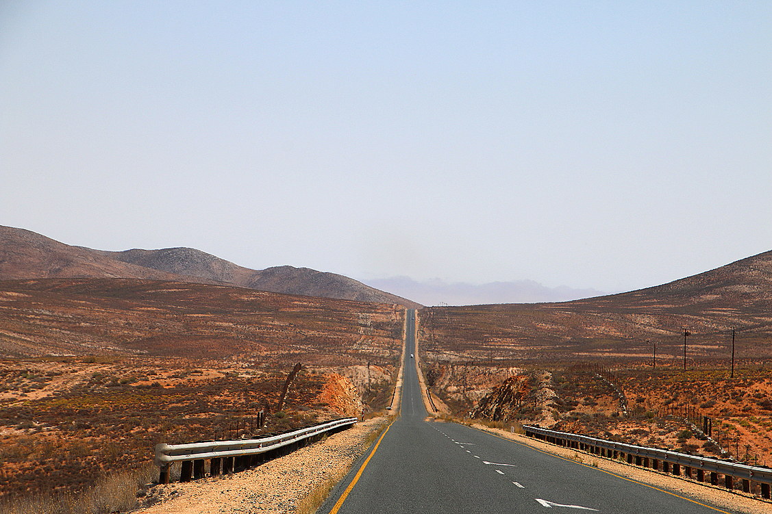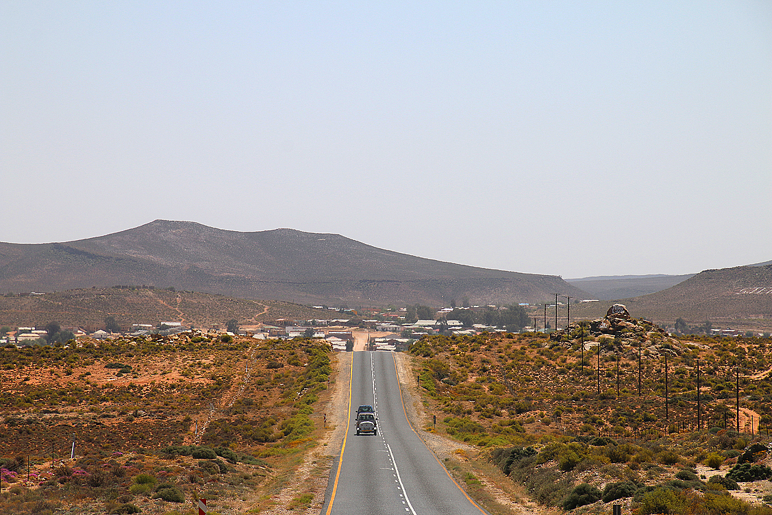 Nur widerwillig stemmen wir uns heute morgen aus den Betten, packen unser Zeug, duschen und traben zu einem raschen Frühstück hinüber zu unseren Freunden. Anschließend bringen wir das Küchenequipment des Bungalows wieder in seinen Urzustand, sammeln unsere Gepäckstücke, verstauen diese in den Autos und machen uns zeitig auf den unvermeidlichen Weg ins heiß herbeigesehnte Richtersveld. Mehrere hundert Kilometer öder Teerstraße und staubiger Gravelroad liegen nun vor uns, ein lästiger Großeinkauf inklusive. Aber als Belohnung winkt immerhin unser absolutes Traumziel, wenngleich wir heute nur dessen unhübschestes Camp, Potjiespram, erreichen werden. Doch gut Ding will eben Weile haben und wer ins Richtersveld will, muss leiden – das besagen schon alte, wenn auch teilweise abgewandelte Sprichwörter…