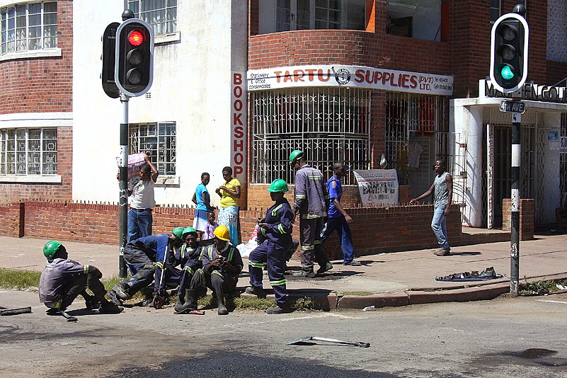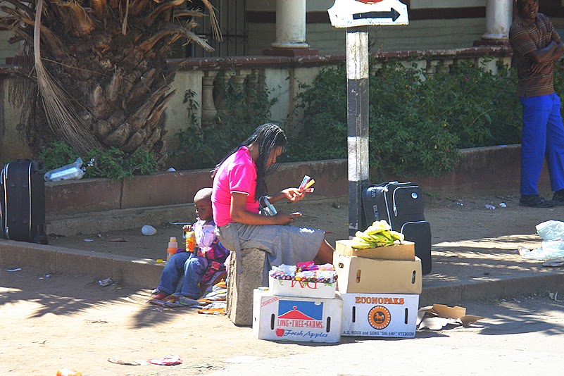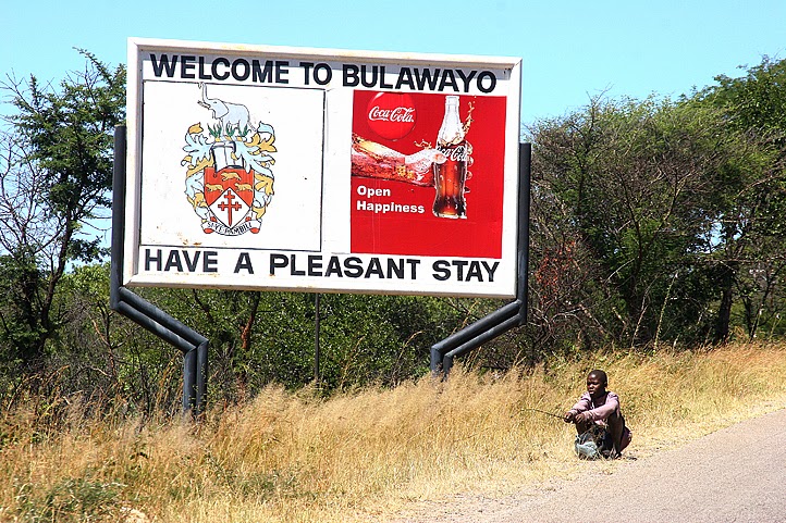 Nein, nein, nein! Die Sonne geht auf, die Vögel beginnen zu zwitschern, die Grillen zirpen und der Bäume Laub wogt leise raschelnd im morgendlichen Wind. Morgen früh werden wir das nicht mehr hören können, in unserem Bungalow mit Bett, Bad und betoniertem Boden. Denn heute liegt eine besonders lange, immens uninteressante, extrem beschissene Strecke vor uns – doppelt rot-markiert im Urlaubs-Kalender! Unsere üblicherweise fließenden und aufeinander abgestimmten Arbeitsabläufe beim Lagerabbau scheinen deshalb etwas zu stocken. Trotzdem aber sind wir irgendwann doch fertig und verlassen extrem schwerer Herzen Main Camp, den Hwange Nationalpark und somit auch das letzte bisschen wirklichen Urlaubs hinter uns. Pah, schon sind wir auf Pad! Kilometer um Kilometer brettern wir dahin, die Landschaft zieht vorüber und, obwohl sie eigentlich schön ist, können wir sie nicht wirklich genießen. Und unsere Ankunft in Bulawayo holt uns dann in die Wirklichkeit, in die Welt der Menschen zurück. Bulawayo! Eine Stadt, die man immer auf den in-flight-Monitoren diverser Airlines sehen kann, die man normalerweise nicht besucht, deren Name aber dennoch einen gewissen Grad der Freude verheißt: erscheint Bulawayo auf dem Monitor, ist man bald da! Wir jedoch sind bald weg – zurück in einer anderen Welt – die zweitgrößte Stadt Zimbabwes macht uns das nachdrücklich klar. 1,5 Millionen Einwohner, aus der Ferne mit beeindruckender Skyline, beim Reinfahren dann doch ein bisschen anders. Rund zehn Prozent der Bevölkerung, gefühlt, sind mit hochglanzpolierten Luxuskarossen, made in Germany, unterwegs, dazwischen ein paar, nicht minder gewienerte Japaner. Die restlichen Einwohner hingegen, ebenfalls gefühlt, lungern auf den Straßen herum. Sie sitzen an Ampeln und lesen Zeitung, unterhalten sich, stillen ihre Kinder, bieten Obst und Gemüse feil – auf Korbsesseln, Obstkisten, ineinandergesteckten Kartons sitzend, aber auch stehend, auf dem Trottoir liegend. Aus dieser Nähe sehen auch die vormals so modern wirkenden Gebäude lange nicht mehr wirklich beeindruckend aus: heruntergekommene Hochhäuser mit verwahrloster Fassade, zweifelhafter Statik und noch zweifelhafterem Erhaltungszustand stehen nun vor uns. Ein Rummelplatz zieht an uns vorüber – Mini-Riesenrad, Karussell, Achterbahn, allesamt lebensgefährlich verrostet… Diese ganze Riesen-Stadt verbreitet ein Flair vergangener Pracht, ein Flair, das man normalerweise nur aus kommunismus-dominierten Staaten kennt. Verwaschene Fassaden, brüchiger Beton, brachliegende Einrichtungen, behelfsmäßige Märkte, mittellose Menschen, Langeweile, Not, Verzweiflung – geboren aus einem allgemeinen Mangel, manifestiert durch spezifische Machtherrschaft.