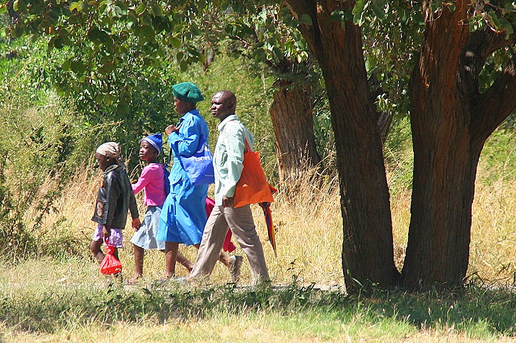 Schrecklich. Besonders schrecklich aber, wenn man diese Angst, diese ohnmächtige Wut, eins zu eins demonstriert bekommt: wir verlassen Bulawayo und folgen dabei einem Pick-Up, dessen Ladefläche, voll besetzt mit Passagieren, über viele Kilometer vor uns her holpert. Die Leute sind allesamt gut gelaunt, feixen, schneiden freundliche Grimassen und winken uns zu. Wir blödeln zurück und alles scheint gut. Bis zu dem Zeitpunkt, an dem ich den Fehler begehe, den Pick-Up samt seiner Passagiere zu fotografieren. Sofort schlägt die vormals gute Laune in Aggression um: die Gesichter verfinstern sich schlagartig, man droht uns mit Fäusten und macht andere, sehr eindeutige Gesten. Irrigerweise war ich davon ausgegangen, der vorangegangene Kontakt, wenn auch nur gestisch, hätte mir eine Lizenz zum Fotografieren erteilt – doch weit gefehlt! Irgend etwas habe ich da wohl missverstanden; oder aber die Leute auf der Ladefläche… Natürlich versuche ich nun, mich zu entschuldigen, so gut das eben geht, doch es kommt nicht an, findet keine Gnade. Die Gesten der erbosten Passagiere werden immer bedrohlicher: Gewehr anlegen und abdrücken, Kehle durchschneiden, Faustschläge und ähnliches. Uns wird ganz anders. Was, wenn uns der Pick-Up von der Straße drängt? Wir sind schließlich schon wieder in The Middle Of Nowhere und niemand könnte uns zu Hilfe kommen! Doch das Ganze geht glimpflich aus, die Zornigen biegen, ebenfalls in The Middle Of Nowhere, plötzlich links ab und wir dürfen unbehelligt weiterfahren. Puh, das war eine echt ungute Situation!