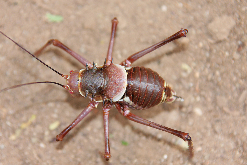 Schwitzend lümmeln wir gerade in unseren Klappstühlen und genießen das erfrischende Hopfengebräu, als mich plötzlich etwas an meiner nackten Wade kitzelt. Nichtsahnend, ich habe ein Schweißrinnsal aus der Kniekehle in Verdacht, wische ich über mein Bein, doch meine Finger berührten nicht die erwartete Feuchtigkeit, sondern einen harten Chitin-Panzer. Erschrocken schaue ich auf meine Wade und blicke direkt in die rotglühenden Augen einer monströsen Sattelschrecke, die sich hartnäckig dort festklammert. Wäh! Mit einem entsetzten Quieker springe ich auf, verschütte fast mein kostbares Bier und versuche, das riesige Insekt durch heftiges Schlenkern der heimgesuchten Extremität abzuschütteln. Plöpp macht es, als das Monster endlich im Sand landet und sich mit einem empörten Schnarren aus dem Staub macht. „Ah, ein Männchen!“, meint Jochen trocken und ohne jegliches Mitgefühl für meine ausgestandenen Nöte. „Wart, Schneck, da sind noch mehr!“, sagt Heinz und entfernt liebevoll grinsend zwei weitere Chitinbestien von der Rückenlehne meines Stuhls, bevor ich mich wieder setze. „Uih, ja, das ist eine richtige Invasion!“, flötet Annette und blickt begeistert in die Runde. Und tatsächlich: sie sind überall! An den Tischbeinen, den Stühlen, dem Auto und auf dem Boden. Wie ein groteskes Heer gepanzerter Aliens scheinen sie alle in unsere Richtung zu schwadronieren. Ach, was sag ich: sie haben es eindeutig auf mich abgesehen; eine Schar von Sattelschrecken marschiert geradewegs auf mich zu und alles, was meine Reisegenossen tun, ist sich über mich und meine Insektophobie zu amüsieren.