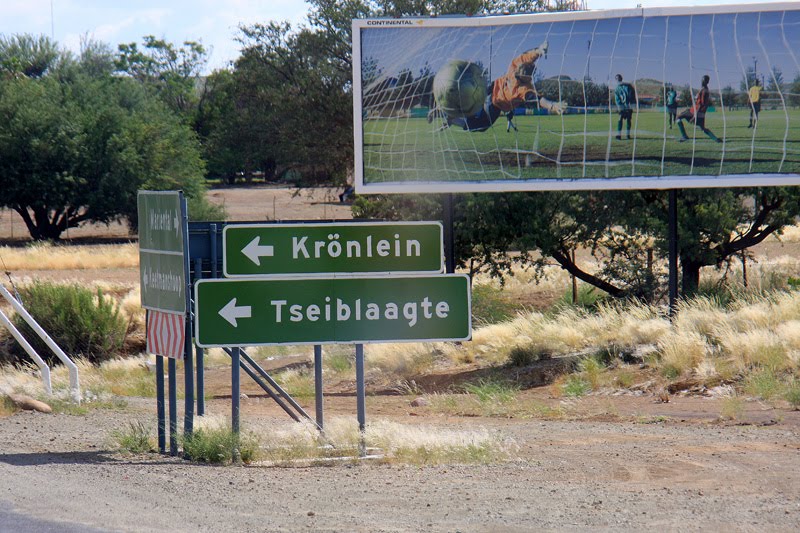 Annette ruft sofort ihren Sohn in Deutschland an und beauftragt ihn, die Nummer der südafrikanischen Nationalparkbehörde herauszufinden, was dieser verlässlich und auch prompt erledigt. Dann endlich kommt Bewegung in die Sache: Jochen nimmt von der diensthabenden Nationalparkangestellten, die ein recht knautschiges Englisch spricht, die direkte Durchwahl nach Sendelingsdrif entgegen und wählt erneut, nachdem er sicher ist, die korrekte Nummer notiert zu haben. Ein Herr am anderen Ende der Strippe unterrichtet ihn in gediegenem Englisch, das keinen Raum für Missverständnisse lässt, über die aktuelle Lage vor Ort: das Führungskabel der Fähre sei gerissen und somit der Übergang Sendelingsdrif bis auf Weiteres nicht nutzbar. Mist, Mist, Mist, das hatten wir eigentlich nicht hören wollen! Aber es hilft ja nichts; wir wollen unter allen, auch noch so widrigen Umständen ins Richtersveld und werden nun wohl oder übel den Riesen-Umweg auf uns nehmen müssen. Aber das ist schon eine sehr stramme Strecke, die uns da in ein paar Tagen erwartet! Tapfer schlucken wir unsere Enttäuschung jedoch vorerst hinunter und überlegen stattdessen, was es in Aus noch alles zu erledigen gibt. Tanken, zu Beispiel. Wir sammeln Heinz ein, der mit roten Bäckchen aus dem Gewächshaus gestapft kommt – er hat dort eine kleine, aber feine Sukkulentenzucht entdeckt – und steuern das Auto zur Tankstelle. Während der Diesel fröhlich in den Tank gluckert, erspähe ich, ein Stück die Straße hinab, ein Postoffice und unsere zahlreichen Postkarten fallen mir wieder ein. Eine Gelegenheit, die es wahrzunehmen gilt – wer weiß, wann und wo das nächste Postamt auf unserer Route liegt – vielleicht kommen die literarischen Kurzergüsse ja doch noch vor uns zu Hause an!