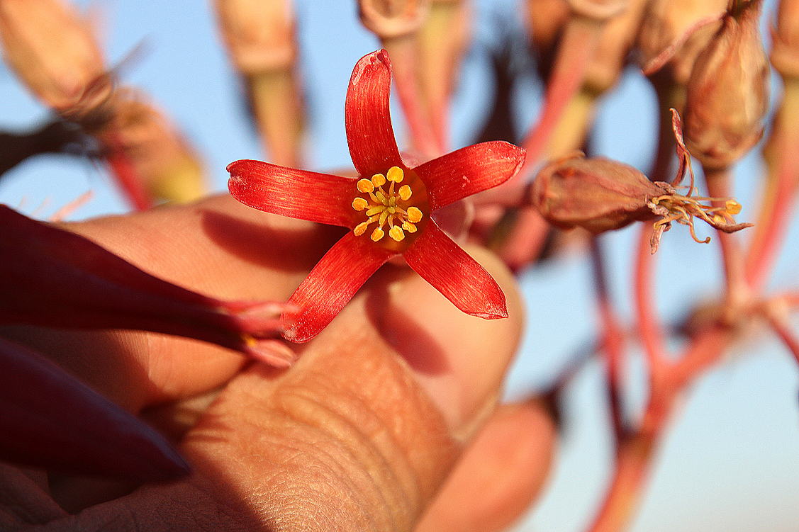Aber es kommt noch besser, denn das verbleibende Drittel dieser Studien geht den klimatischen Aspekt von völlig anderer Seite an: es wäre nicht die Klimaerwärmung, sondern, im Gegenteil, ein außergewöhnliches starkes, nachweisbares Regenereignis vor zirka 55 Jahren, das im Wurzelwerk und bei der Autoimmunität der Köcherbäume derartige Schäden hervorgerufen hätte, dass sie seit Anfang des Jahrtausends wie die Fliegen wegsterben. Mein (unmaßgebliches) Fazit: die Wissenschaft ist sich nicht mal bei den Grundlagen-Fakten einig, keiner weiß irgendwas Genaues, doch das Resultat ist offensichtlich – die Köcherbäume sterben in großer Anzahl, von Nachwuchs ist wenig zu sehen und wenn diese Entwicklung anhält, stehen im natürlichen Verbreitungsgebiet der Aloe dichotoma in etwa vierzig Jahren fast nur noch tote Exemplare herum. Eine mehr als bedrückende Sachlage, kann ich da nur sagen! Aber wenn selbst hochkarätige Spezialisten keine Erklärung für das Sterben der Baumaloen finden, so ist auch keine Besserung der Situation in Sicht – denn wo soll man ansetzen?